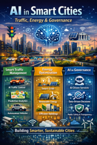 AI is fundamentally reshaping how cities manage traffic, energy, and governance. By enabling predictive intelligence, automation, and data-driven decision-making, AI helps cities become more efficient, sustainable, and citizen-centric.